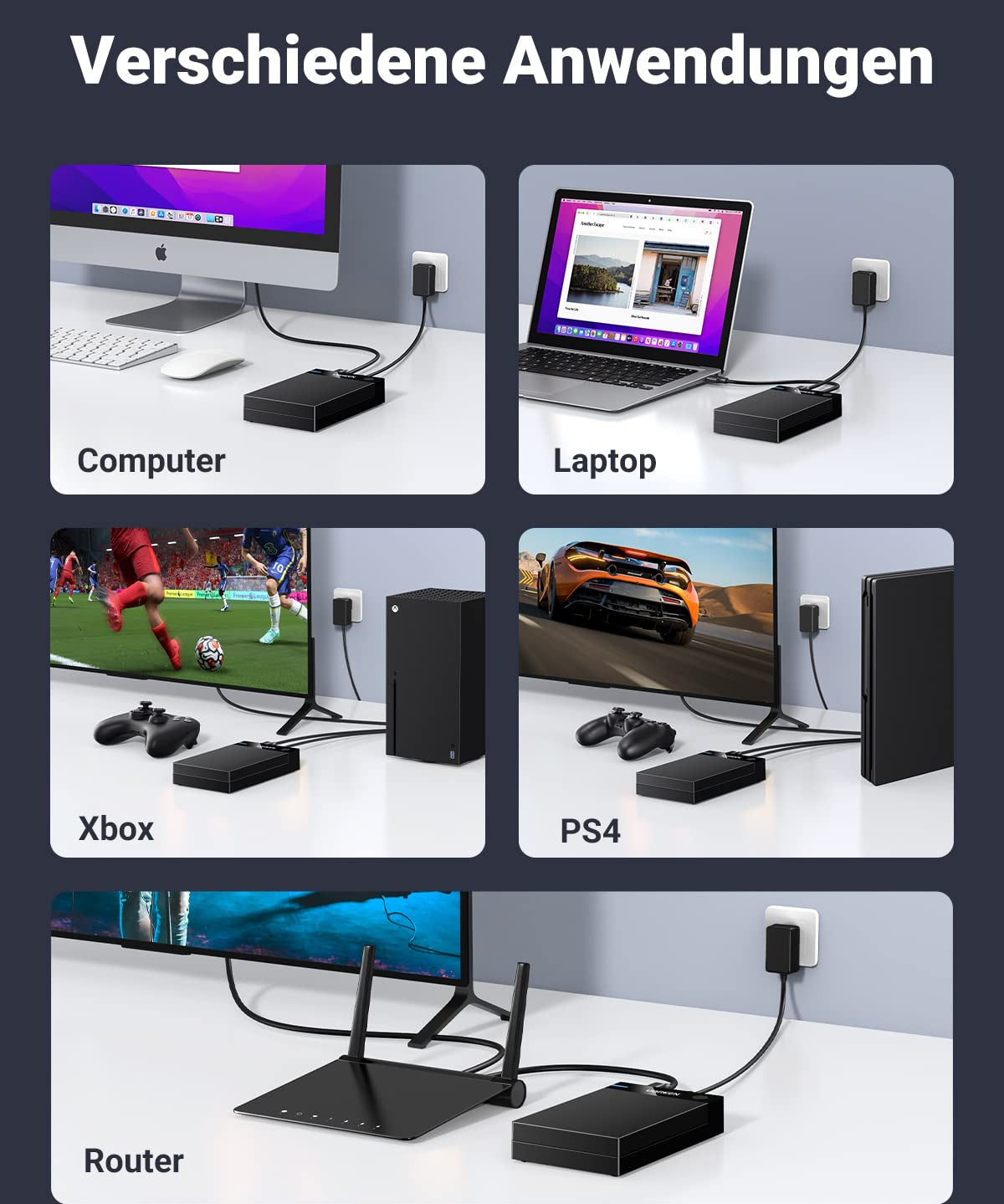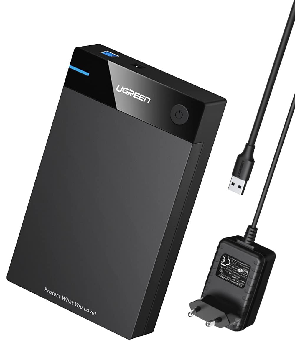 UGREEN USB 3.0 Festplattengehäuse UASP 3,5 Zoll Externe Festplatten Gehäuse USB 3.0 externes Gehäuse Case für 3.5" SATA SSD und HDD mit USB 3.0 Kabel und 12V 2A Netzteil,werkzuglos Schwarz