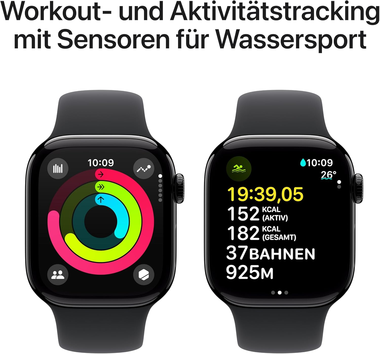 Apple Watch Series 10 GPS Smartwatch 42mm Alugehäuse Diamantschwarz Sportarmband M/L